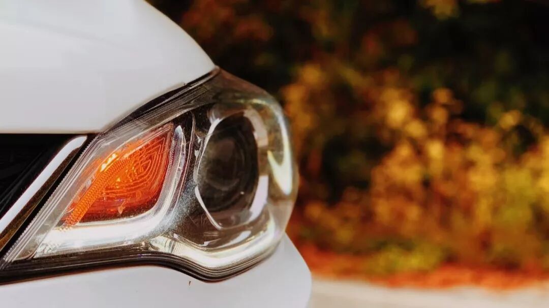 近看下,雖然是鹵素燈光源,但這款頭燈的造型頗為立體,加之一抹金黃透鏡,點綴的是整條山路中的秋色。
