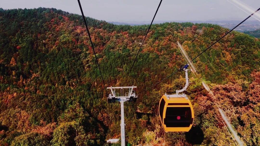 坐纜車下山時,視野被提到了最佳的位置。登高望遠,縱覽群山深秋的痕跡,體驗木蘭天池震撼的高空美景。