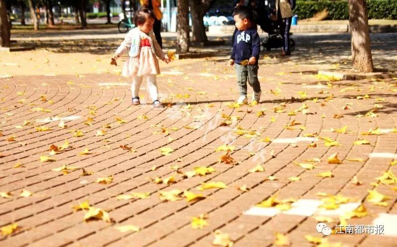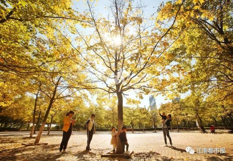 贛東大堤風光帶等地的樹木也染上了秋色