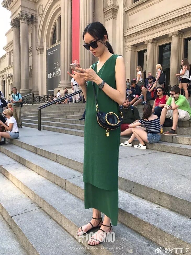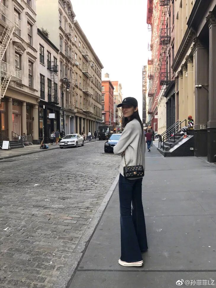 私下低調無比的孫菲菲穿衣亦是如此。好不容易自己發了一組街拍照,清清淡淡的灰藍搭配全靠超模氣質撐起了一片天。