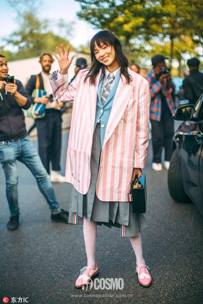 混搭能讓略顯嚴肅的西服百褶裙充滿潮架式!