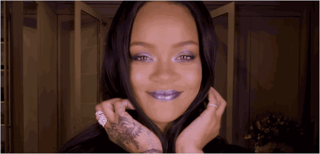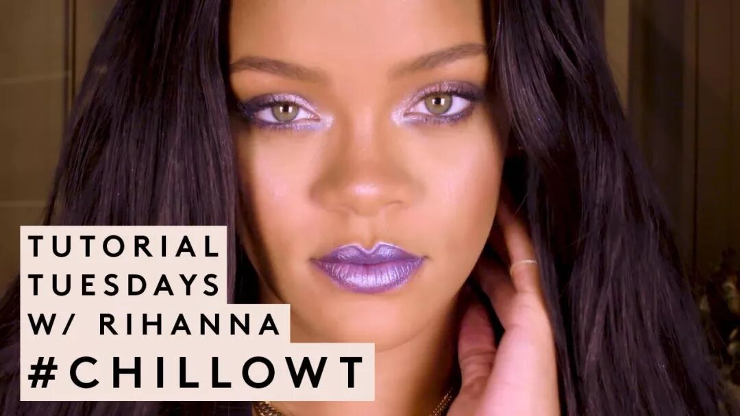 昨天, 她又為FENTY BEAUTY全新CHILLOWT系列出了妝容小視頻。選用的主打色,就是「金屬閃」系列中的核心色彩:紫色亮片 (PURPLE SEQUIN) 。