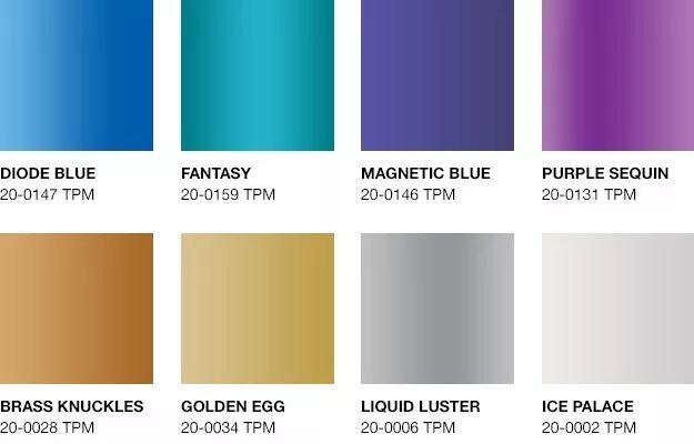 最近,PANTONE 再次在色彩界「興風作浪」。它發布了一組金光閃閃、珠光調色、十足戲劇效果的色彩,並將該系列命名為「 金屬閃 METALLIC SHIMMERS 」,包含核心色彩冰宮 ((ICE PALACE)、金蛋 (GOLDEN EGG)、磁藍 (MAGNETIC BLUE) 在內的,共計200多種金屬色。