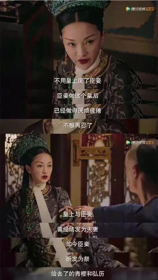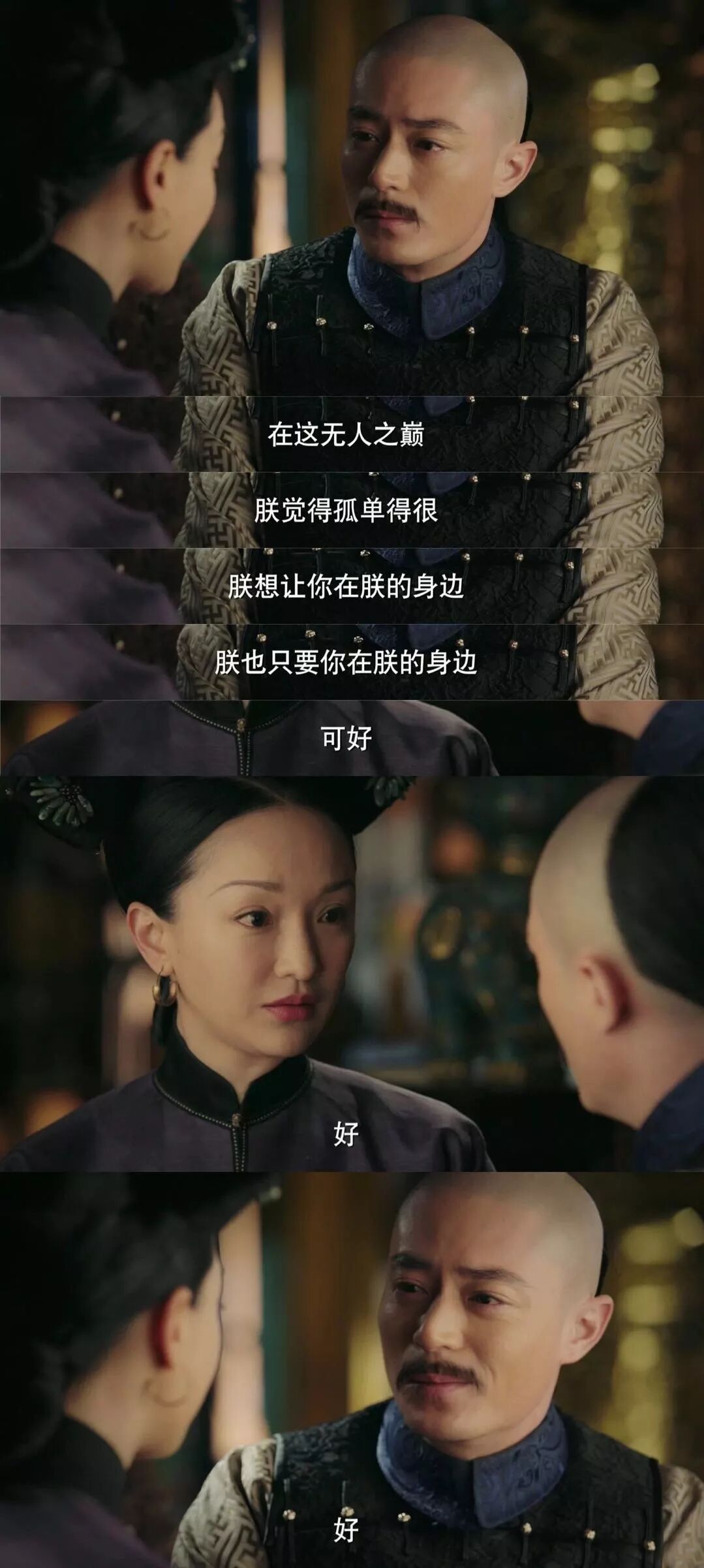 那麼多的鋪陳,她都不想要皇后這個虛名,但乾隆一句「我在權力之巔,太寂寞」,她義無反顧地去了。
