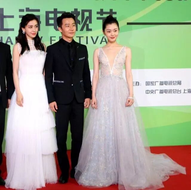 兩人一起的合照,為了不搶楊穎的風頭,宋軼穿一身白裙子,居然搭的是一雙拖鞋,而楊穎穿黑色深V長裙,小秀性感,穿高跟鞋的她看著比宋軼高了很多。