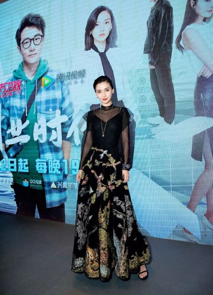 相比之下,楊穎穿的很優雅大氣,一襲黑色套裝裙很有女性韻味,特別是上身透視的黑色緊身衣,裙擺金色刺繡,又顯華貴高雅氣息。