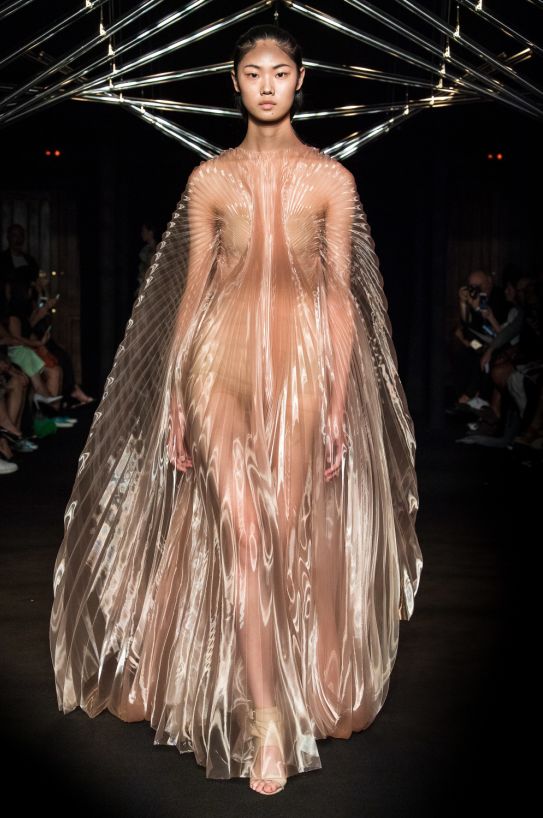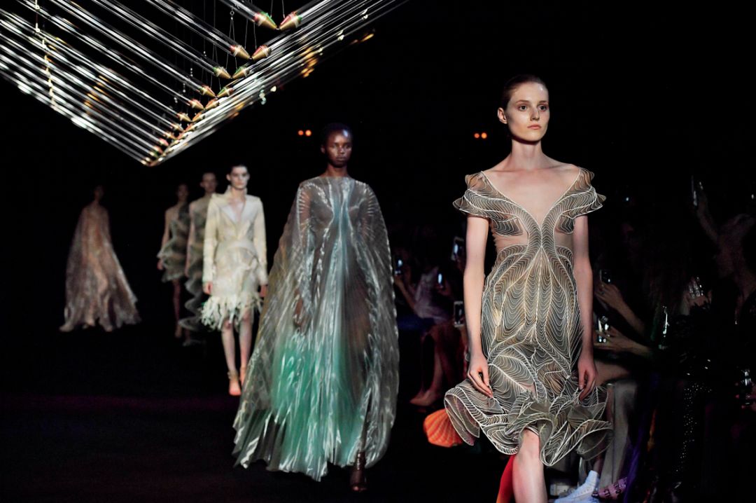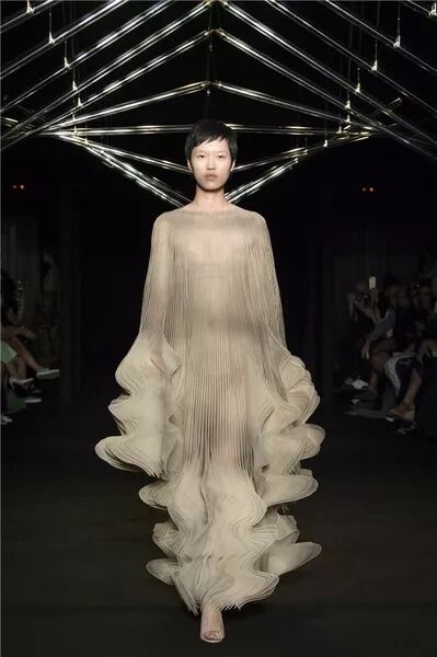 立足生物自然科技,為新型面料注入活力。它們所呈現的面貌,以意想不到的風情和肌理,帶給我們驚喜。在2018秋冬巴黎高級定制的T台上,Iris van Herpen在巴黎Le Trianon劇院發布了2018 秋冬高定系列「Syntopia」,充滿科幻感與未來感。
