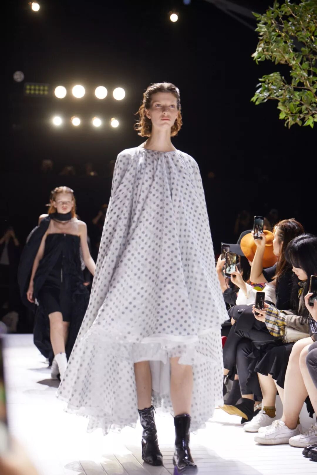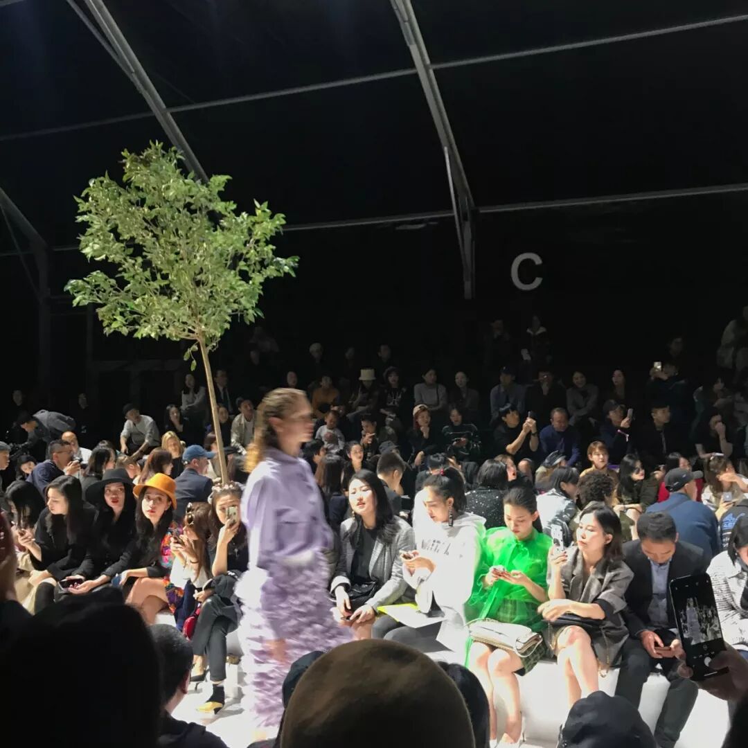 我記得當時檢完票之後,就進去排隊準備入場了,排隊的地方不是很大,所以真的是每走一步就會撞到人。但我覺得最厲害的,就是沒想到竟然可以在秀場看到樹!怎麼會想到把樹搬進來!