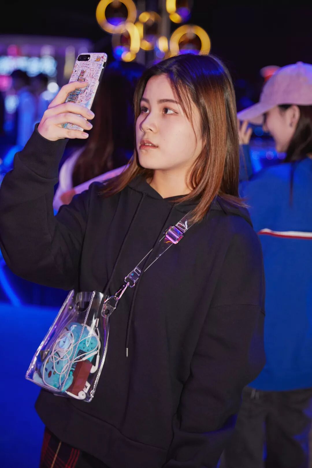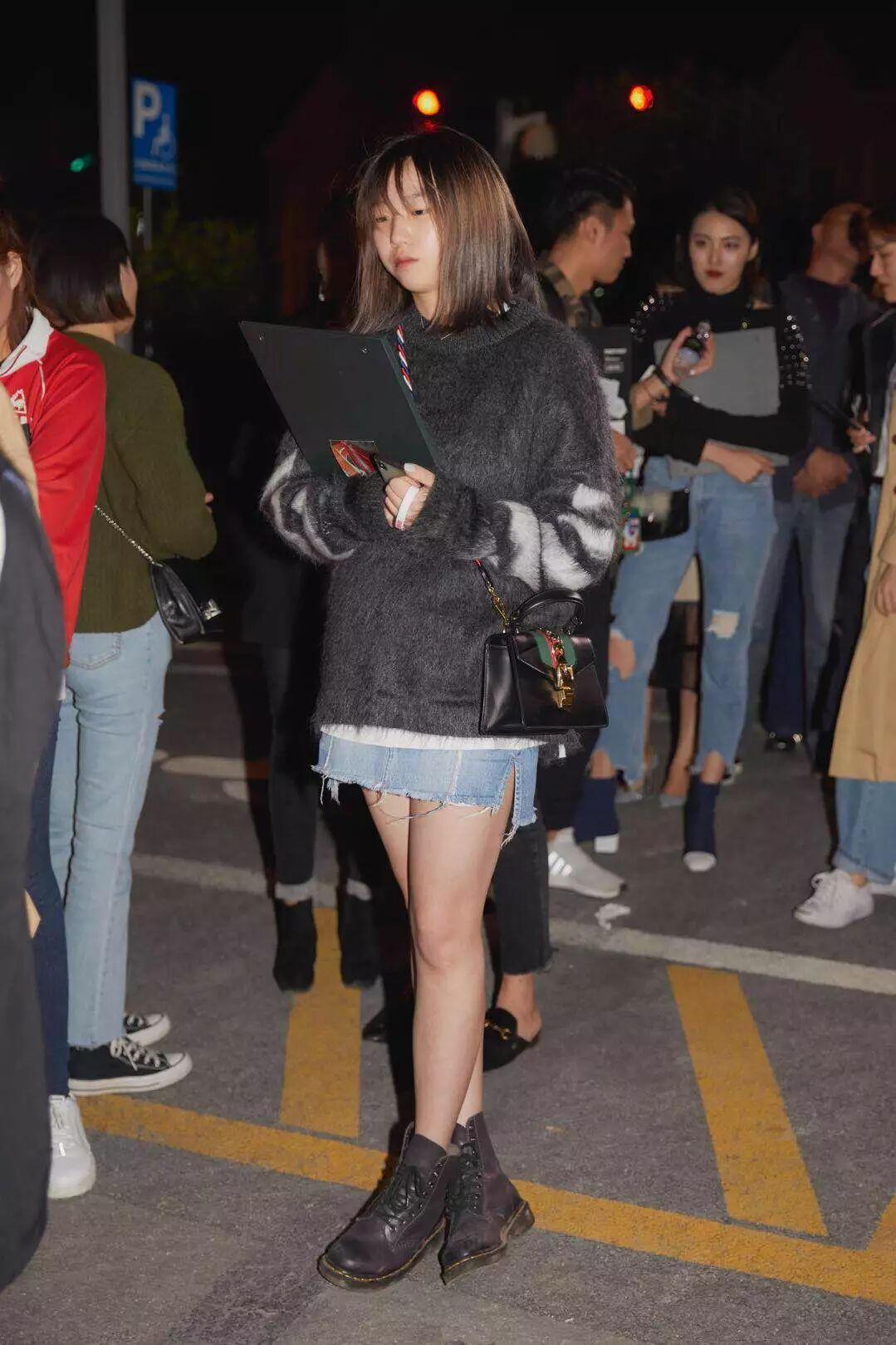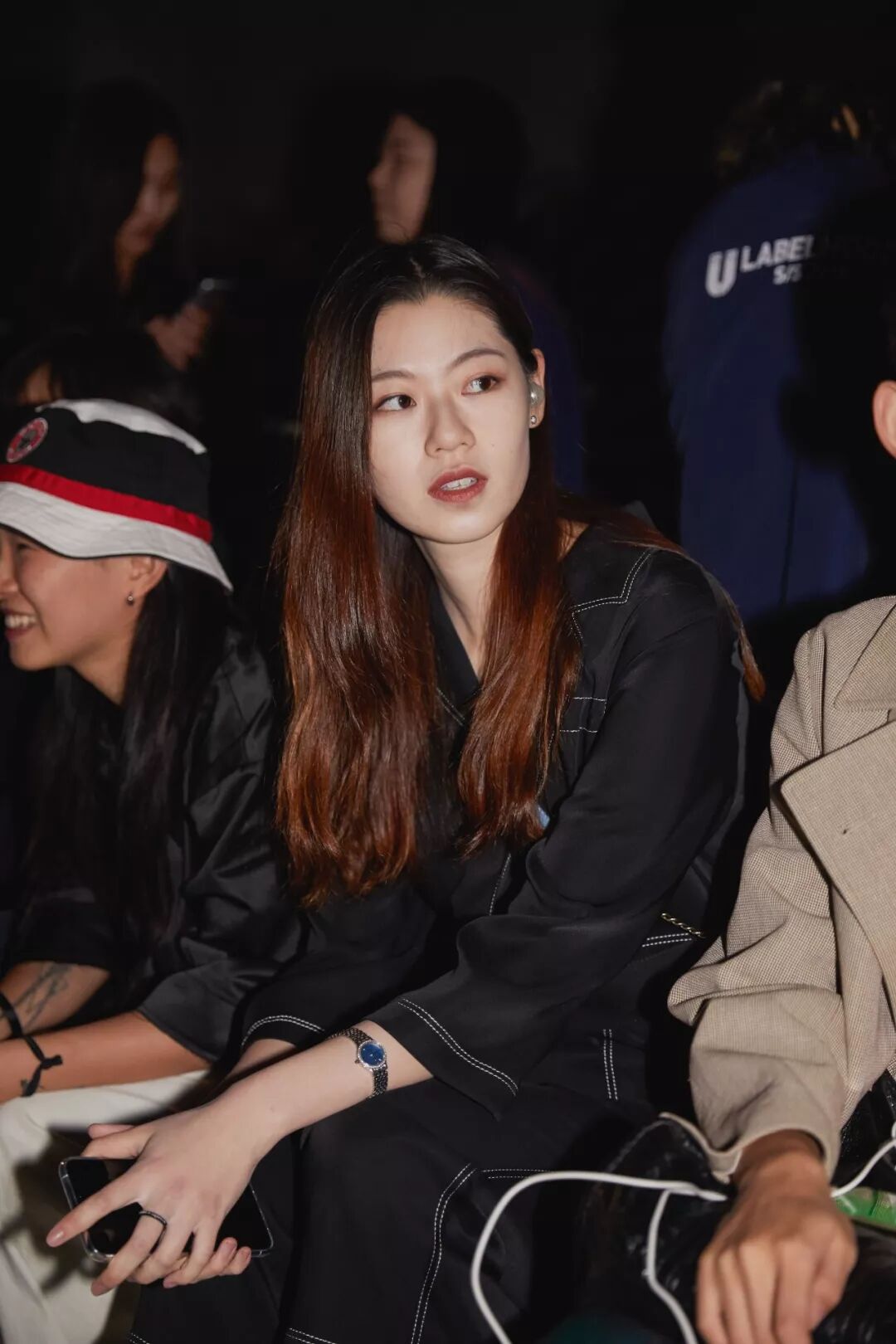 「其實在看秀前,我就有一份志願者的工作啦,並且要求穿黑色的衣服,所以我當天真的只穿了一條黑色連身褲!本來覺得會很冷,但當我看現場那些很「拼命」的時尚達人,我也就無話可說了