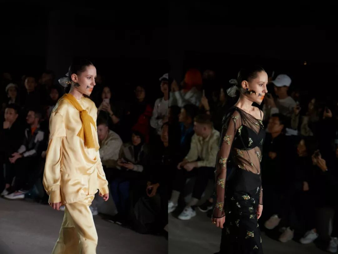 但是吧,每次想到這里,我還是很欣慰有時裝設計師這一職業的存在的,起碼世界上有人會為了穿什麼怎麼穿,在做不一樣的思考和嘗試。對於YIRANTIAN,雖然我只知道設計師畢業於印象里非常Artist的倫藝,所以報著揭彩券的心理期待著!看完覺得,設計自然不用說,妝發真的是有驚艷到我,面紗下晶瑩剔透並暈染開來的嘴唇,真的讓模特仿佛是從油畫里走出的。但是… 你們就不能給這些看起來生活優渥漂亮姑娘找個溫暖點的走秀環境嗎?哈哈。