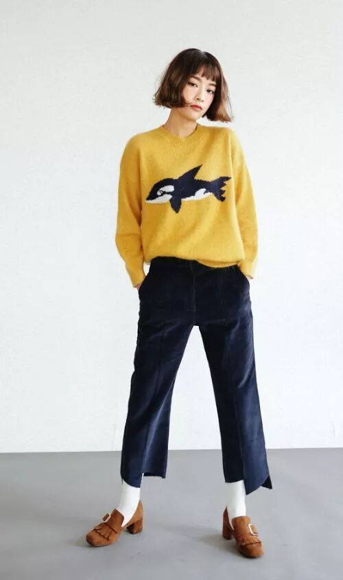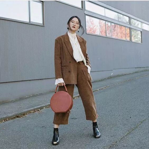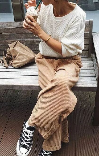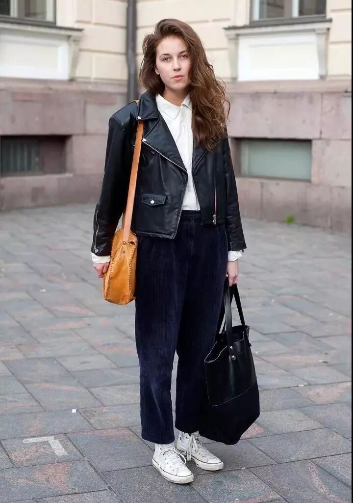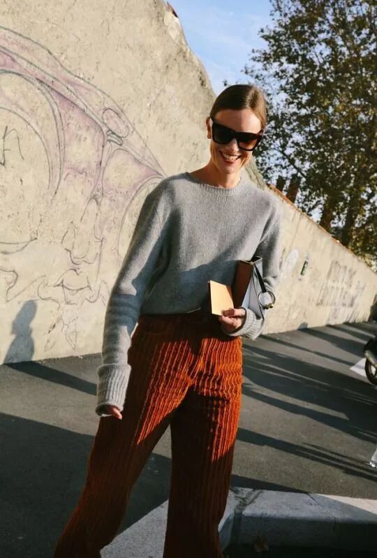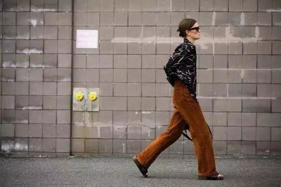 最時髦的還是闊腿褲,燈芯絨這樣有一定厚實度的材質配合寬大的褲腳,氣場全開