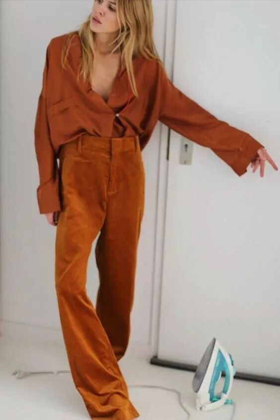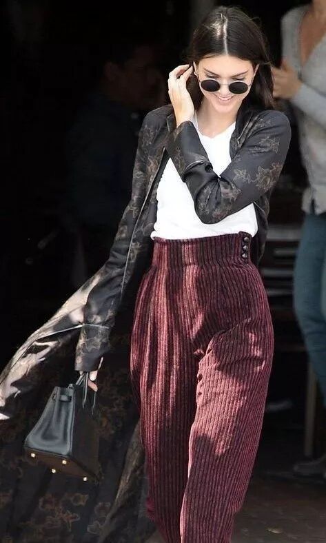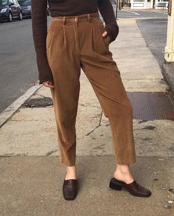 超高腰的蘿蔔褲、直筒褲也是不錯的選擇。在搭配上很能打。燈芯絨的豎向紋路還強化了顯瘦效果