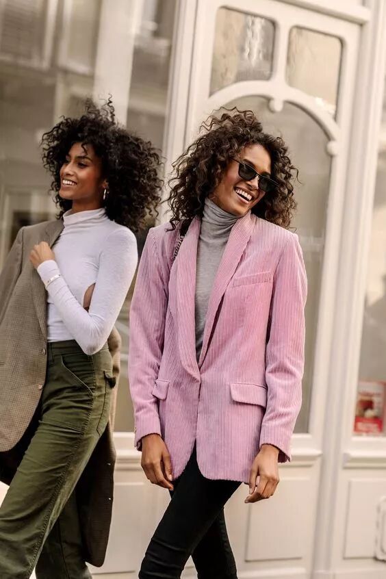 灰粉非常耐看並不會有甜膩的感覺。尤其在氣場強大闊腿褲、套裝、西服這些單品中,粉色可以把你變成一個甜酷girl