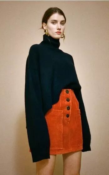 大毛衣搭燈芯絨半裙也有強烈的復古味道