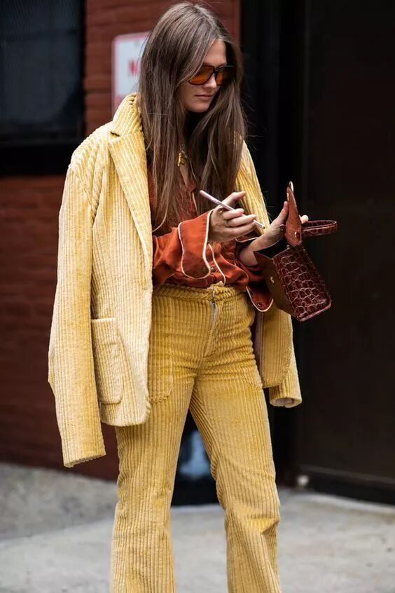 闊腿褲、套裝這些燈芯絨單品是時尚的,如果你想要走復古路線,可以把燈芯絨和格紋單品搭配在一起