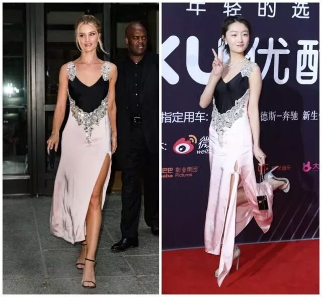 一款睡衣風格連衣裙,看起來十分接地氣,同時粉嫩的款式,看起來十分性感,周冬雨與國際超模撞衫,終於知道為什麼,她一直那麼矮小了。