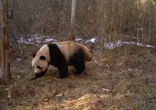▲海塘河溝道布設的紅外線相機拍攝到的大熊貓,圖片來源網路