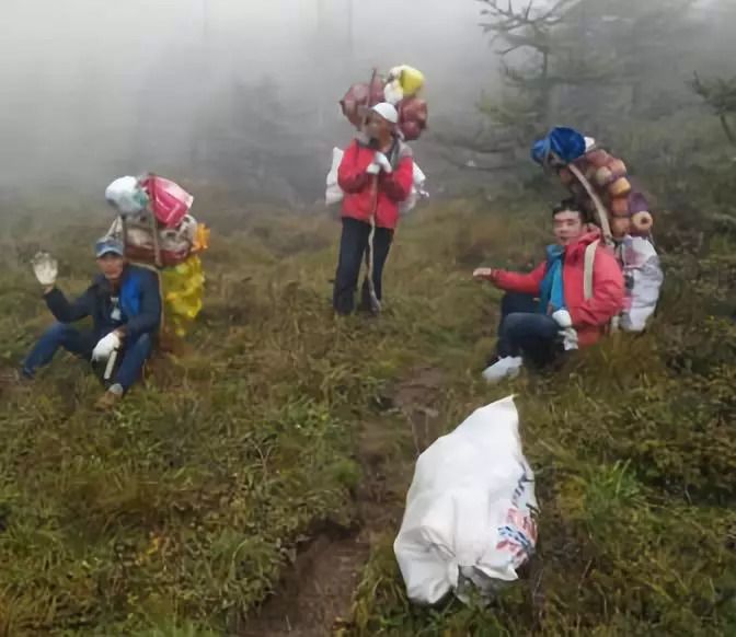▲保護區工作人員清理垃圾並背下山,圖片來源網路