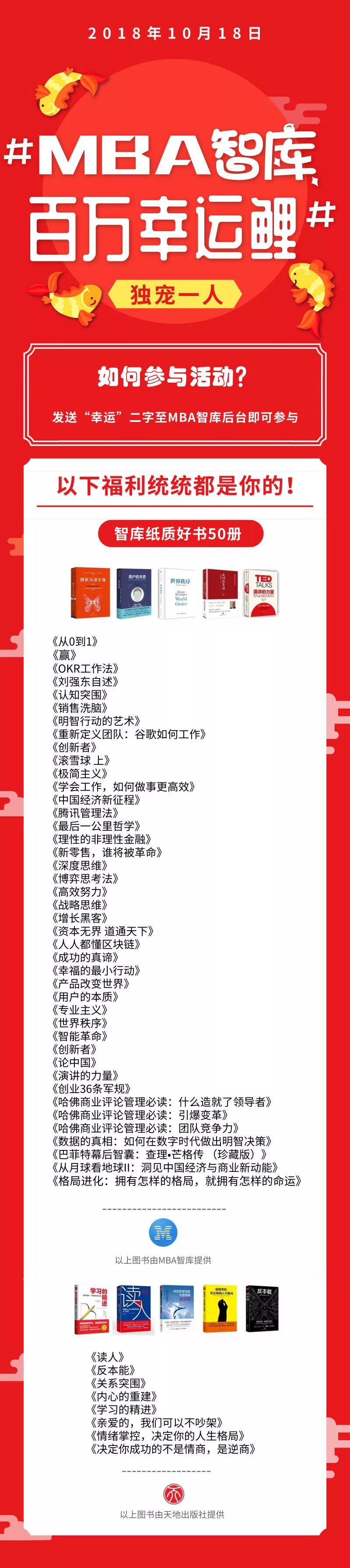 一:在MBA智庫後台回復”幸運“二字獲得活動推文及規則;