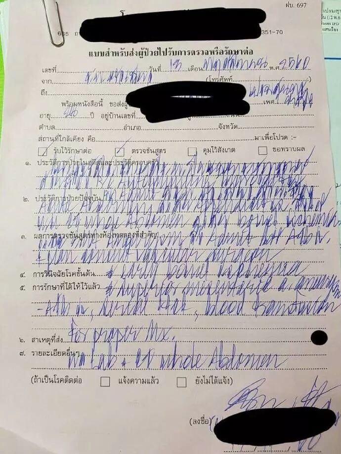 泰國一位網友去醫院看病,醫生給他開了這樣的單子..確定不是在試筆芯兒嗎