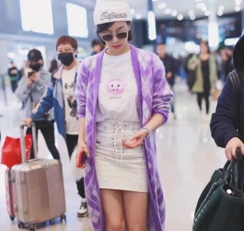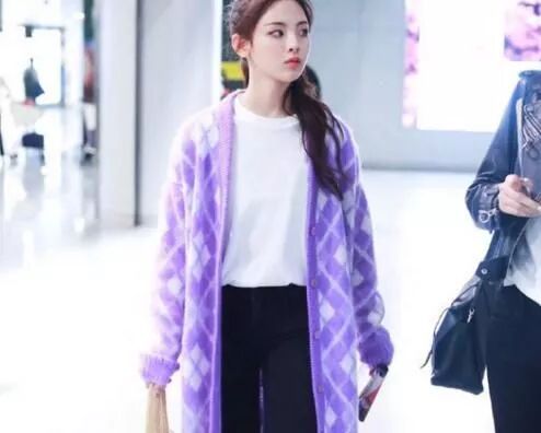 宋茜洋氣,是有目共睹的,紫色針織外套,搭配一條白色半身裙,裙子凸顯身材,外套洋氣大方,簡直不要太漂亮!