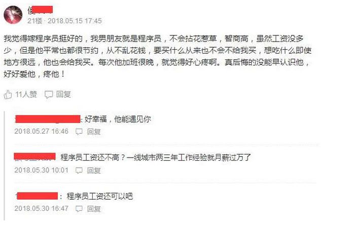 有網友覺得嫁給工程師挺好的,自己男朋友就是工程師,不會拈花惹草,智商也高,雖然薪水不是很高,但是節約不亂花錢,要買什麼也不會不給買,想吃什麼,即使很遠也會給買,小編想說,這樣的男朋友,給我來一打好嗎?你們的男朋友都是國家統一分配的嘛?