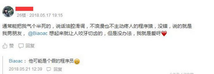 當然也不是所有的工程師都不善於表達,下圖的網友表示,自己的男朋友是個工程師,通常把自己氣個半死,說話油腔滑調的,不浪漫也不主動疼人,想起來就咬牙切齒的!