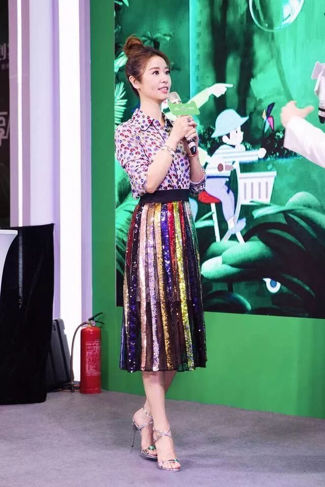 雖然她是42歲的年紀,可是她這一身打扮,說她22歲都有人信!碎花衫搭七彩裙,少女力十足,再搭一雙高跟鞋,女人味也有了,雖是扮嫩可是大家都說好看呢。