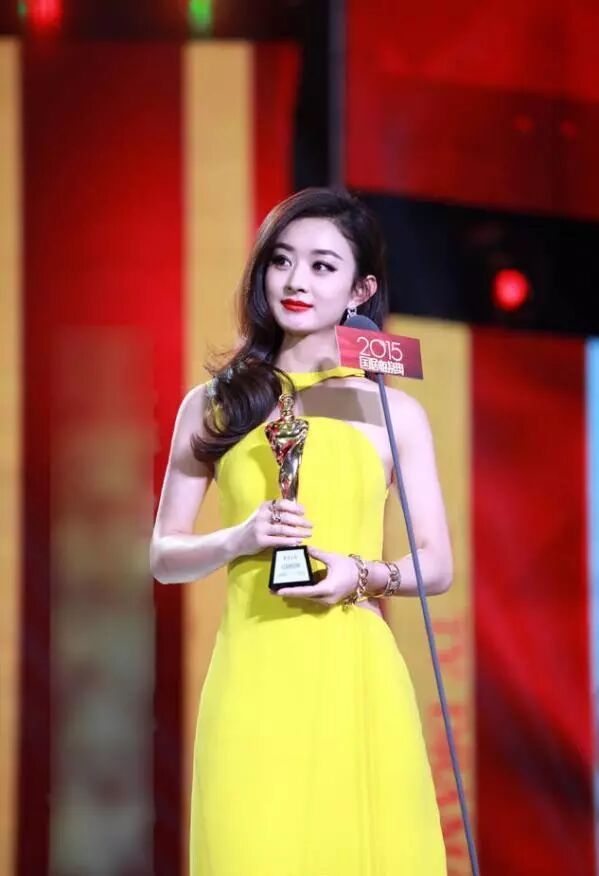 鮮艷的檸檬黃可不是正常人能駕馭的了的,膚白貌美的趙麗穎偏偏把這套檸檬黃長裙禮服穿得活力十足。充滿設計感的款式露出香肩和小蠻腰。側分的捲髮配紅唇,迷人的不得了。