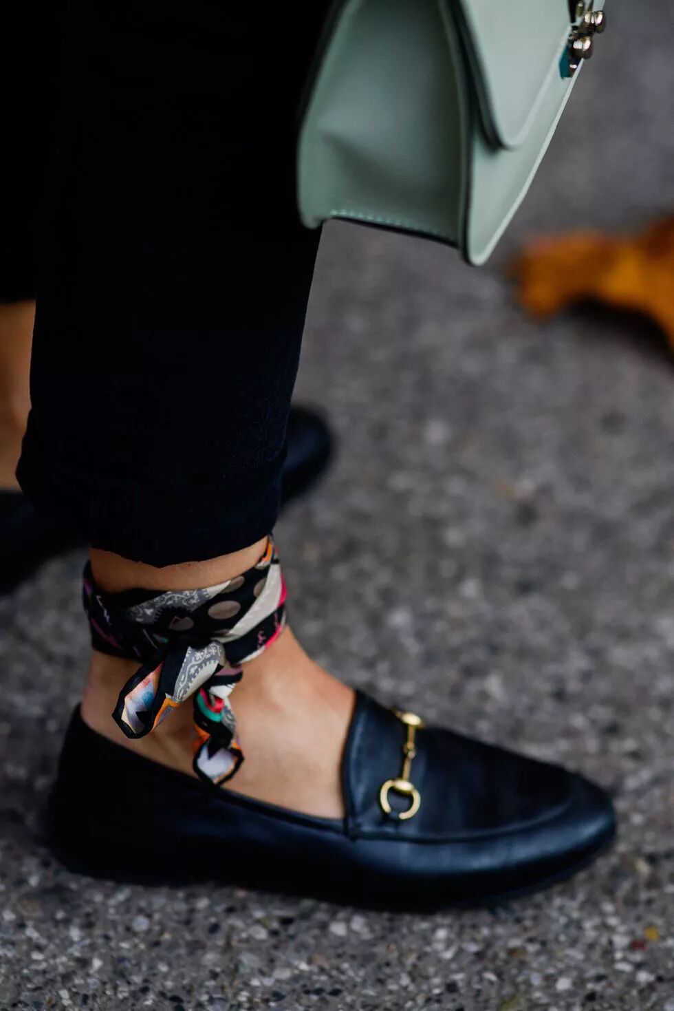綁腳踝上,看上去就很性感,不過要注意絲巾的粗細,太粗可能會顯腿短。