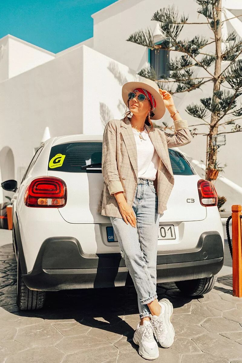 Chic的搭配就是和牛仔單品一起搭,絲巾呢最好是紅色的,紅白藍組合怎麼配都不會錯。