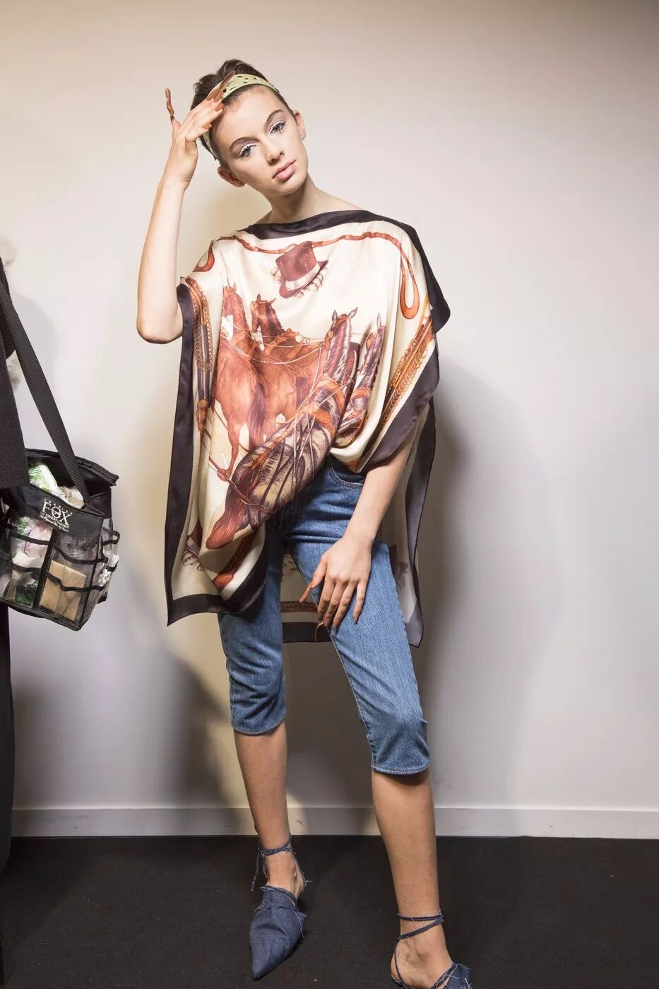 今年,絲巾圖案本身就非常流行,好多設計師都直接把絲巾做成衣服,大面積展示圖案。