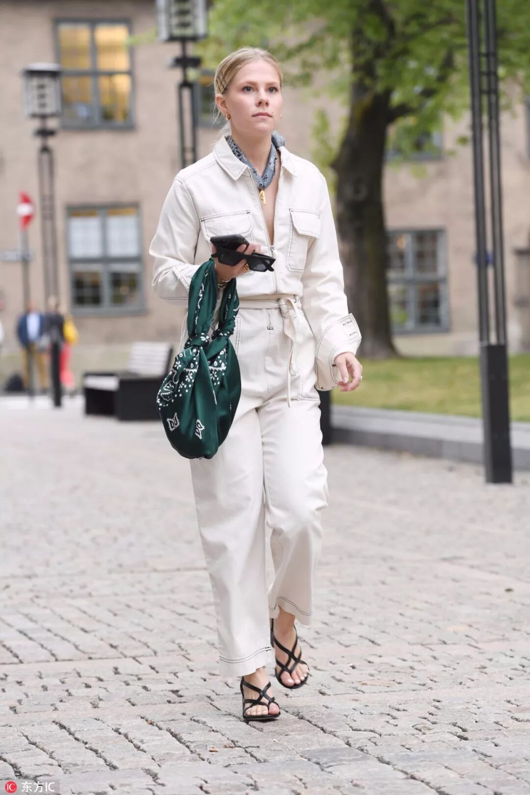 同樣要包住,可以像這樣平過來包,搭配像這樣的工裝連體褲就很帥,看上去有種假小子的感覺,同時也保留了女人味。