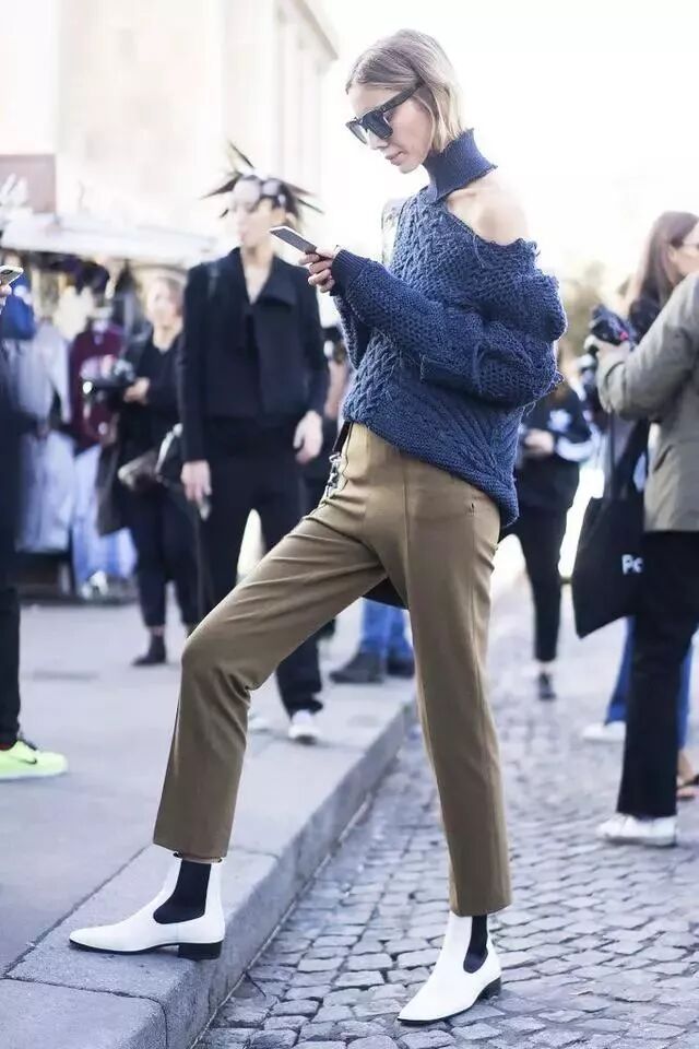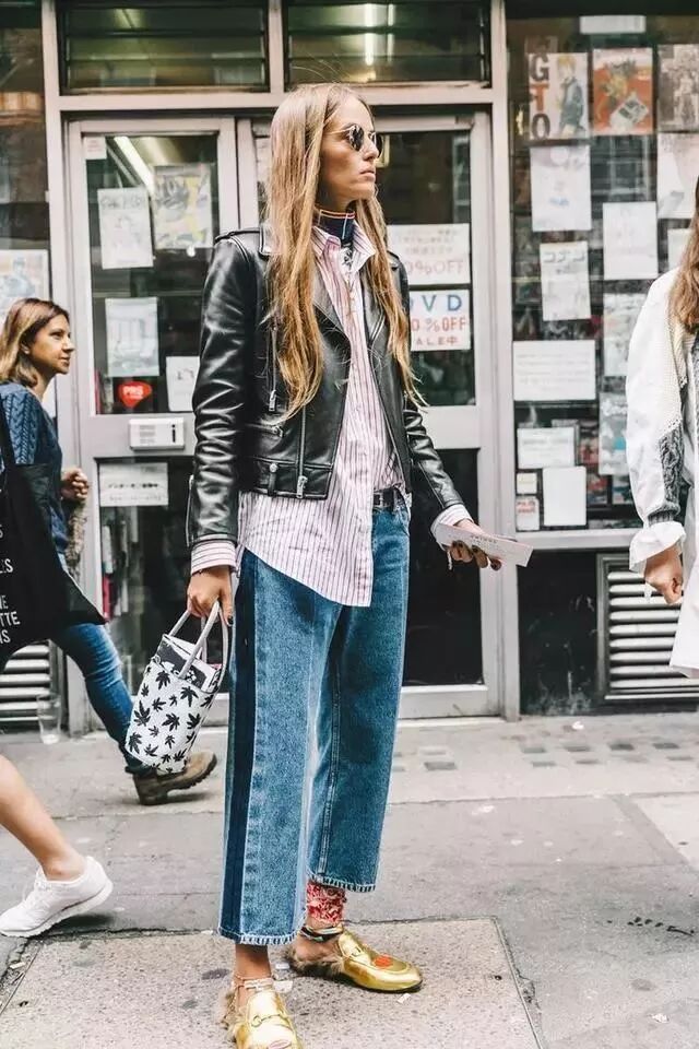 媽媽褲在街拍中出現的頻率,秒殺大熱的闊腿褲和喇叭褲,媽媽褲的超高腰和卷褲腳設計,既遮肉又拉長腿部線條,還多了酷酷的中性腔調哦~