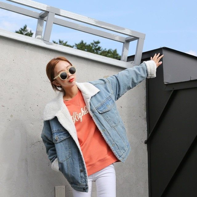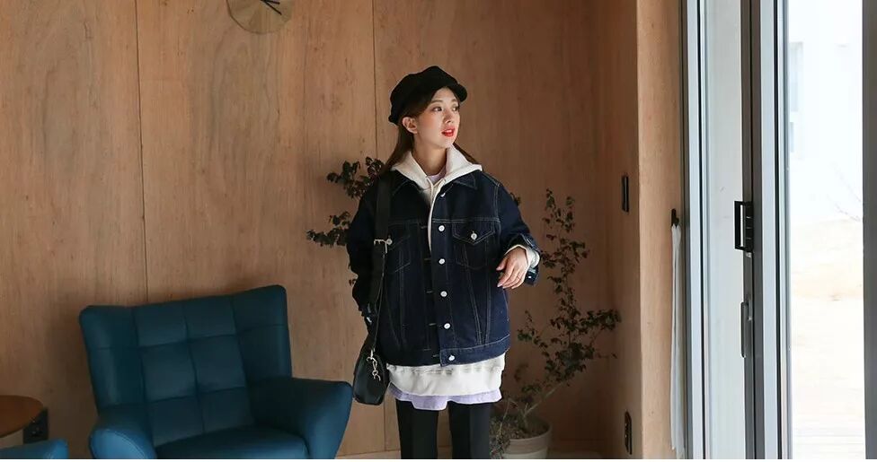 寬鬆牛仔外套或皮衣