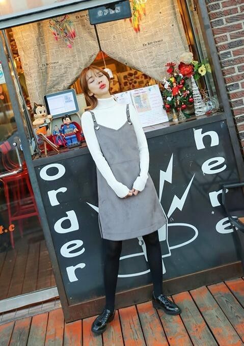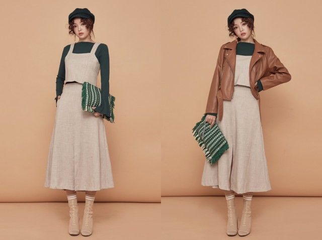 和毛呢吊帶裙也是非常搭的組合