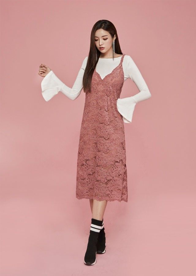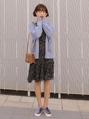 輕薄的針織和吊帶裙混搭作為內搭