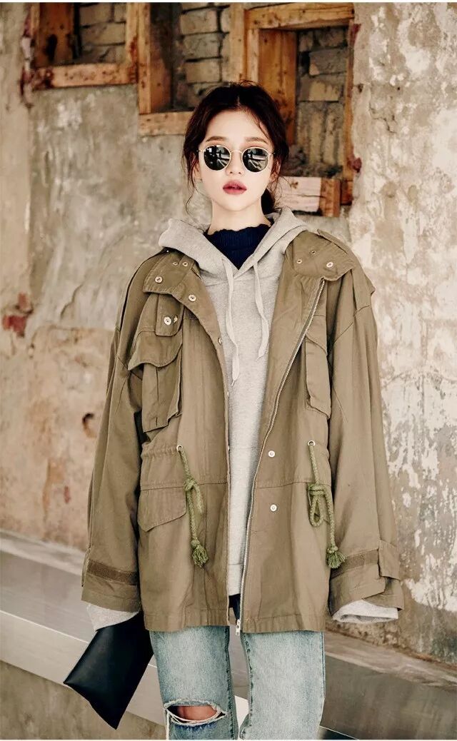 連帽的帽衫搭配外套會特別有休閒感