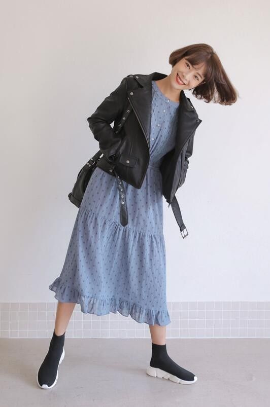 配上酷酷的牛仔外套或機車服外套都特別合適