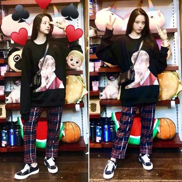 首先,各種衛衣是我們在歐陽娜娜照片里最常見的單品,好穿舒適,也非常學生架式。無論是搭配瘦腿褲還是英倫風的格紋褲,都錯不了。
