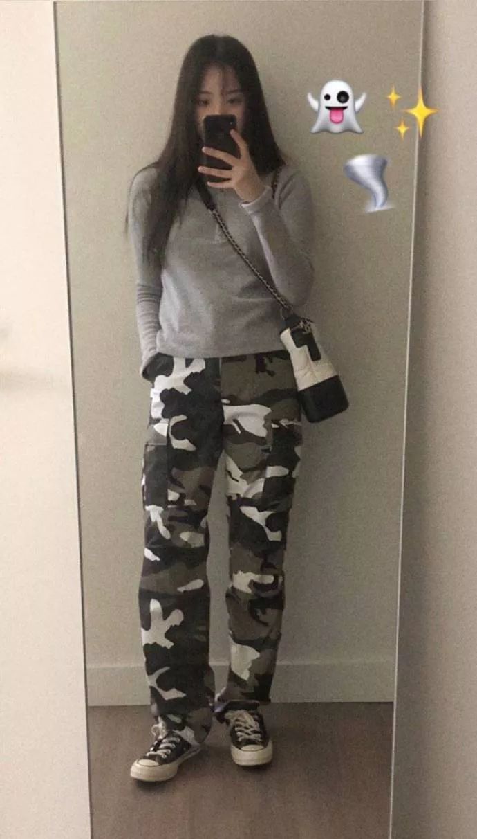 作為一名運動風的姑娘,歐陽娜娜還沒少穿寬鬆的工裝褲,不管是條紋的,還是迷彩的,都主打帥氣style。並且工裝褲還是藏肉的第一單品,貼秋膘的季節吃胖了點也不用怕了。