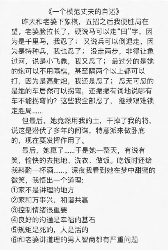 無論有任何爭執,老婆的想法都很簡單,那就是:道理我都懂,只是相對於道理而言,我更想聽你說句「我愛你,我願意遷就你」。