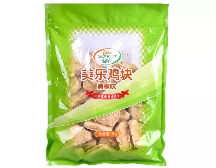 選聖農生態農場上等雞肉,配以國際先進油炸生產線精制而成,口感噴香酥松,鮮嫩多汁。