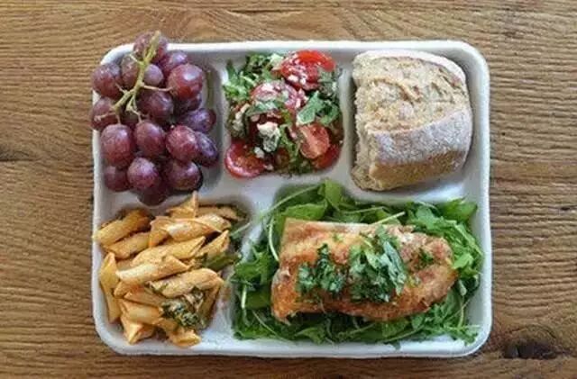 午餐要吃飽:葷一份,素兩份,主食一份,水果一份