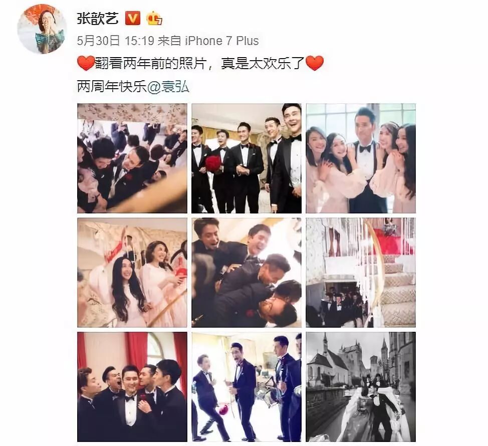張歆藝和袁弘結婚兩周年紀念,張歆藝在微博上說:翻看兩年前的照片,真是太歡樂了。還專門@了袁弘。