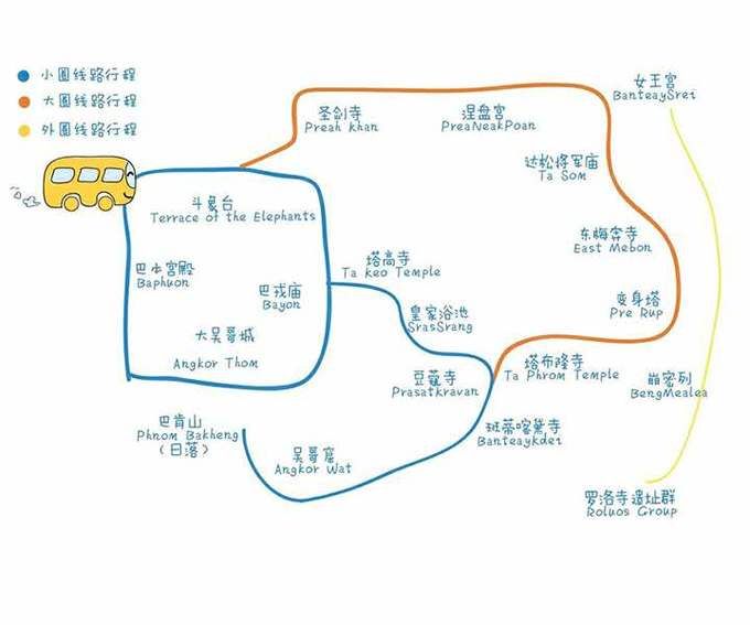 吳哥的古跡共有上百處,本次行程挑選了世界聞名、最震撼的16處景色,帶你深度體驗吳哥之美。行程規劃分為了吳哥窟小圈、大圈、外圈古跡。