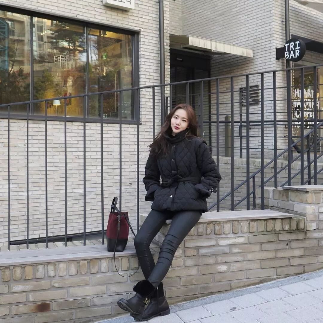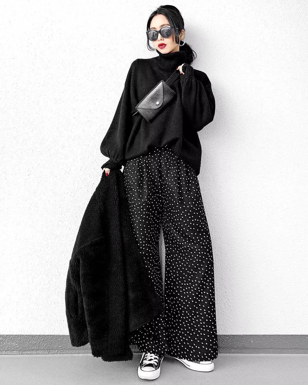 秋冬的鞋子基本也是會比較偏大臃腫,褲子和鞋子同色系的時候視覺可以從大腿延伸到腳。