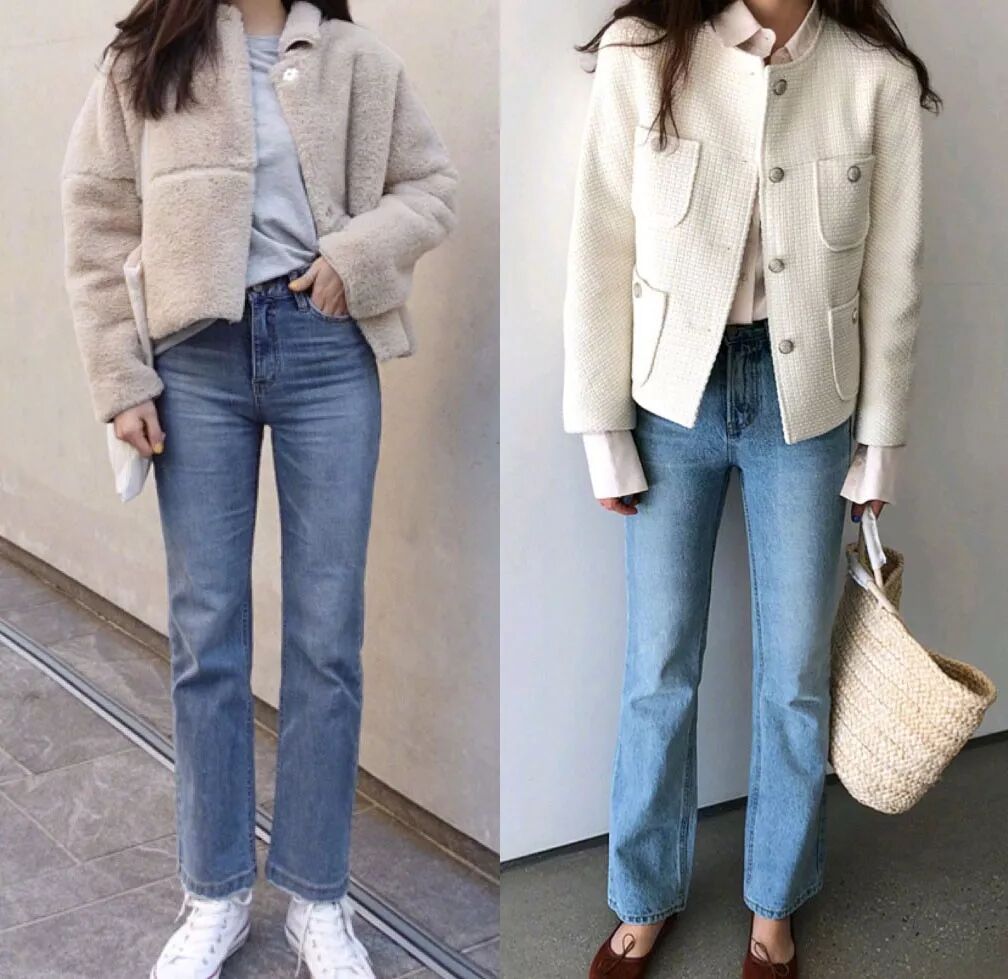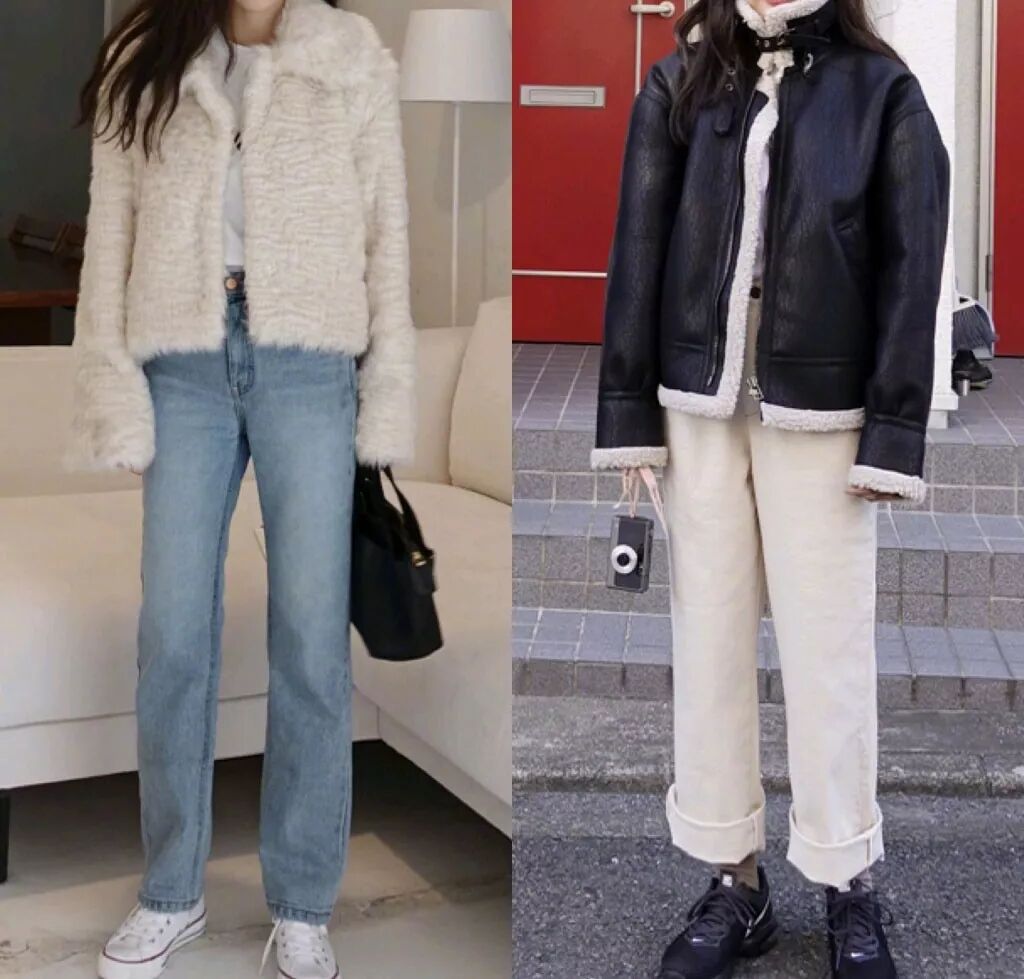 如果臀部胯部不大的女生,還可以選擇上面兩圖左邊一樣更短的外套長度。