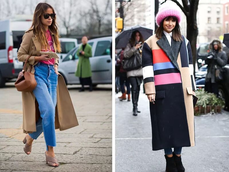 俄羅斯名媛Duma官方身高155,左上圖H型和右上圖偏繭型的外套,H型的外套更有縱向的視覺延伸效果。