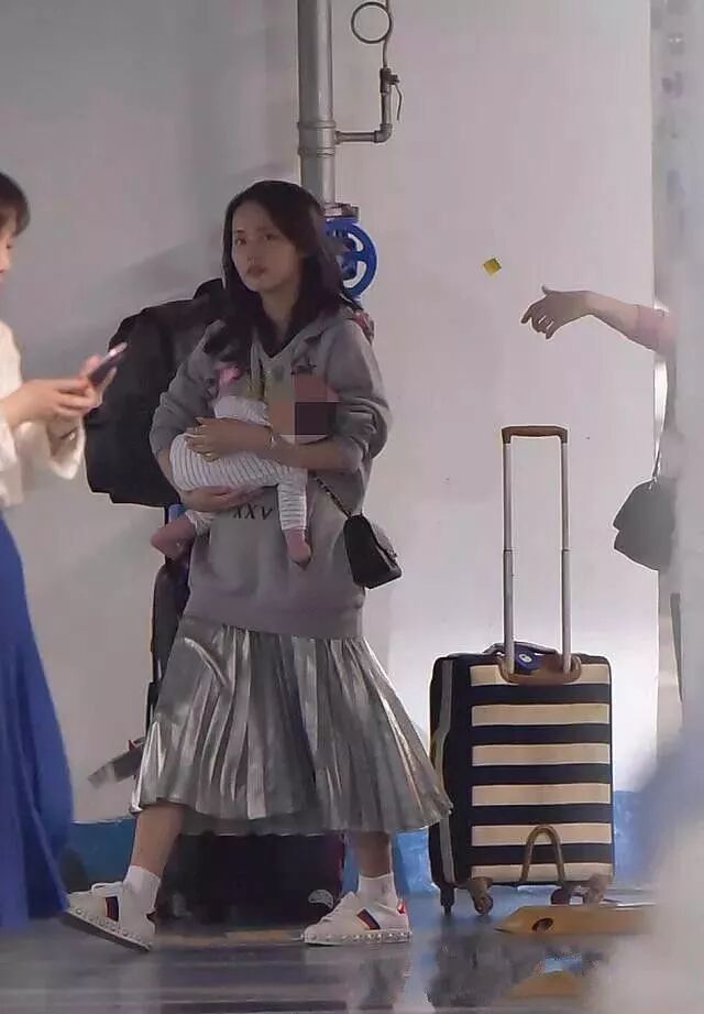 張嘉倪抱娃的照片,被大家抓拍,這位辣媽真的很有想法,身穿連帽灰色運動上衣,看起來更加接地氣,同時齊瀏海,讓自己格外減齡。